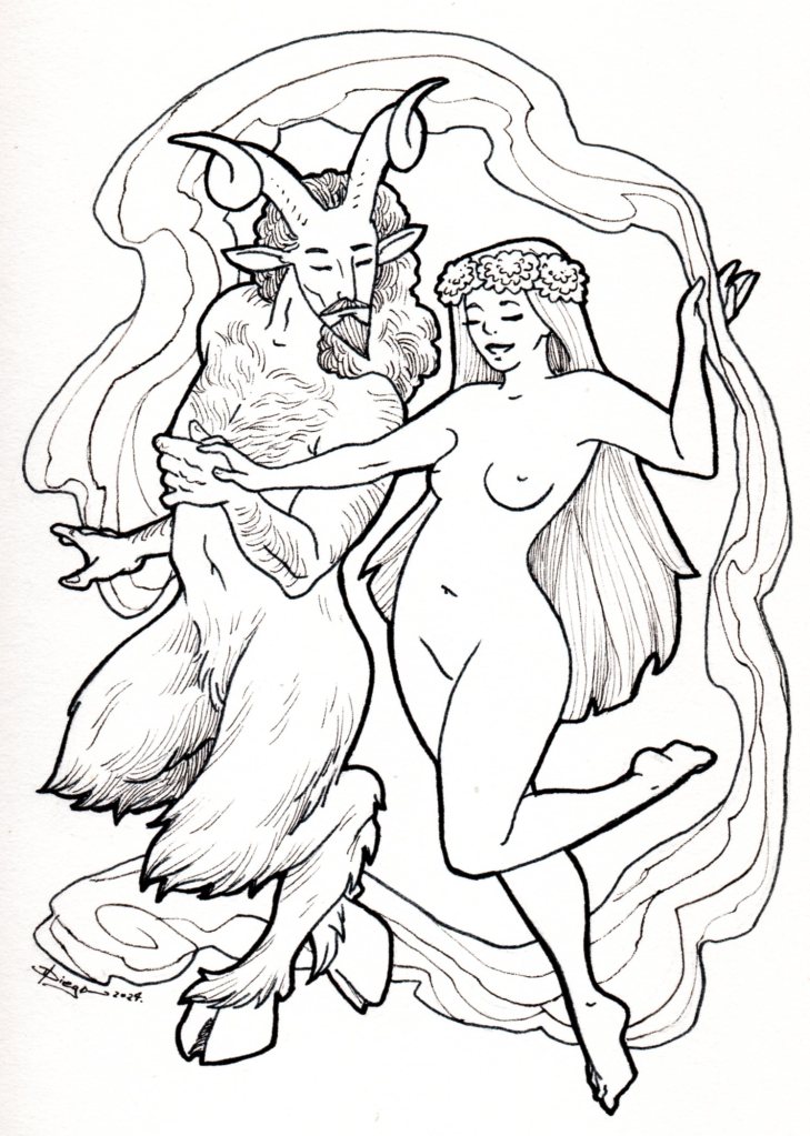 Así, Shiro fue improvisando una melodía que contuviera la esencia de la escultura que tenía en mente: un sátiro en plena danza con una ninfa, ambos tomados de la mano, entre girones de seda.