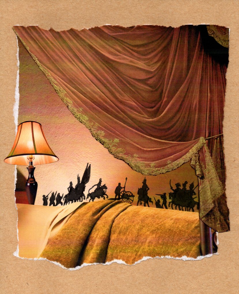 Eran soldados. Sombras de un ejército diminuto, con caballería y sombreros altos, alistando sus mosquetones, pequeños generales de sombra con sombras de plumas adornando las sombras de sus sombreros. Las sombras de los caballos se movían graciosamente y, de vez en cuando, estallaban sombras casi imperceptibles, porque no eran más que sombra de humo por los disparos. Los dos ejércitos combatían en un silencio absoluto, a pesar de que algunos alzaban los brazos, otros gritaban órdenes, los caballos relinchaban y pronto se detonaron algunos cañones. Cuando volví la cabeza hacia la cama confirmé lo que ya intuía: no había ahí ningún ejército, ni siquiera un soldado solitario diminuto, ni en las sábanas, ni en la piecera, ni en ningún lado de la habitación, aquella guerra pequeña pero agitada existía solamente en las sombras que proyectaba la lámpara desde la mesa de noche.