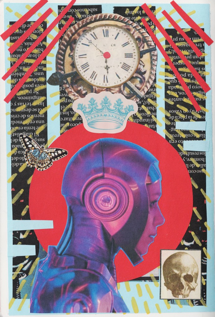 Y ahora pienso: si la IA generativa es como el malévolo Melkor y no puede crear nada nuevo, y en vez de eso roba el trabajo de los artistas para convertir lo vivo y hermoso en mediocre, bien podríamos emprender un contrataque en su propio terreno, con toda la creatividad que tenemos y de que la IA ni siquiera es consciente de que carece. Respondamos el slop de IA que está devorando todo, que ha robado a innumerables artistas humanos, que pretende banalizar lo trascendente de los verdaderos procesos creativos. ¿Encuentras en internet una imagen hecha por IA evidentemente artificial y hueca? Recorta los ojos y utilízalos para armar un collage con métodos análogos. ¿Encuentras una imagen generada por IA de aspecto repulsivamente artificial? Toma los mismos elementos básicos de su composición y haz un dibujo a partir de eso. Si encuentras un video generado por IA deséchalo y escribe una historia como solamente tú desde tu humanidad podrías escribirla, inspirado en una idea que hayas generado en tu propia mente a partir de esos segundos de video. Caza estas creaciones artificiales e inhumanas, toma la afrenta que pretende hacer a la labor creativa humana, y utiliza la alquimia que es tu propia creatividad para convertirlas en algo auténticamente valioso para contraatacar.